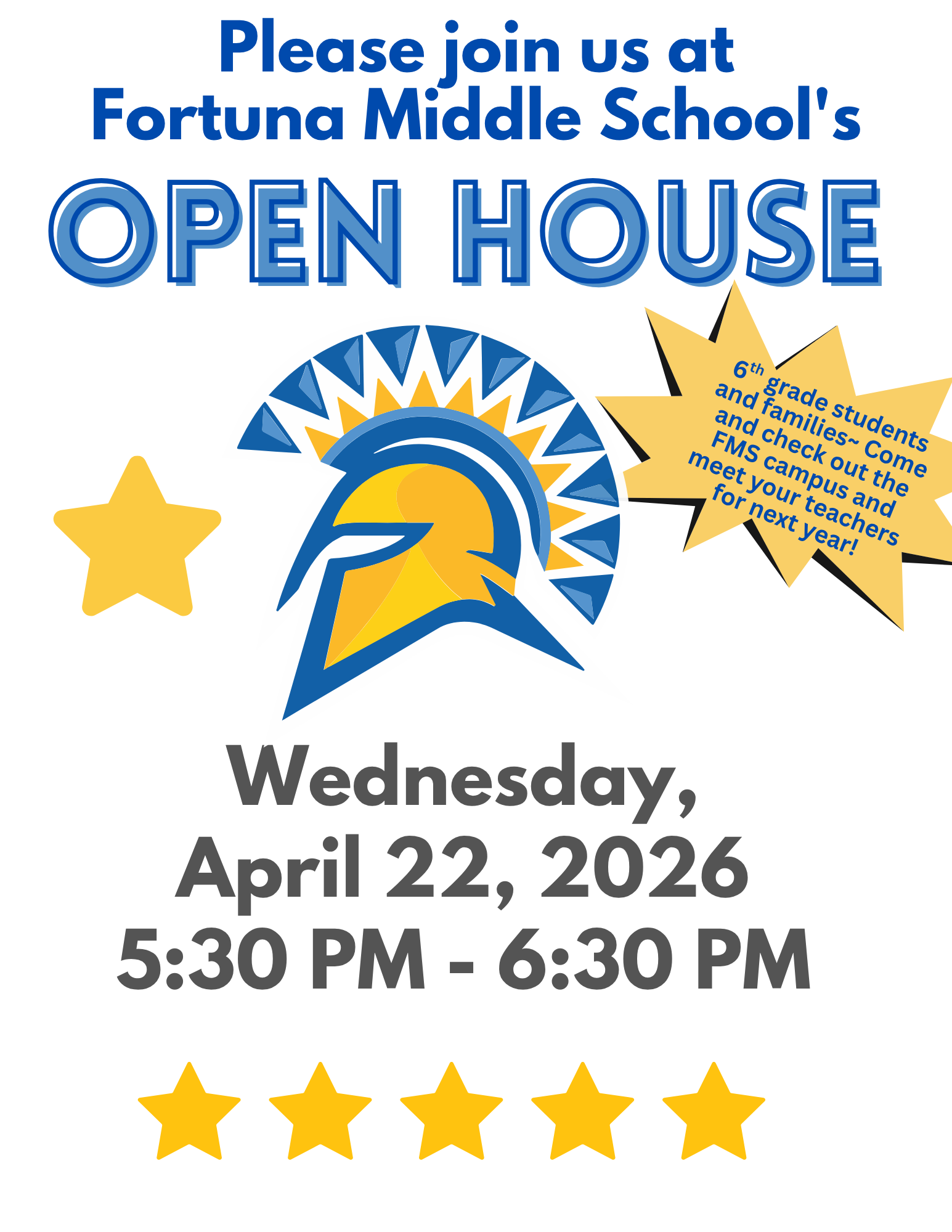 Fortuna Middle School Open House ~ Wed., 4/22, 5:30-6:30